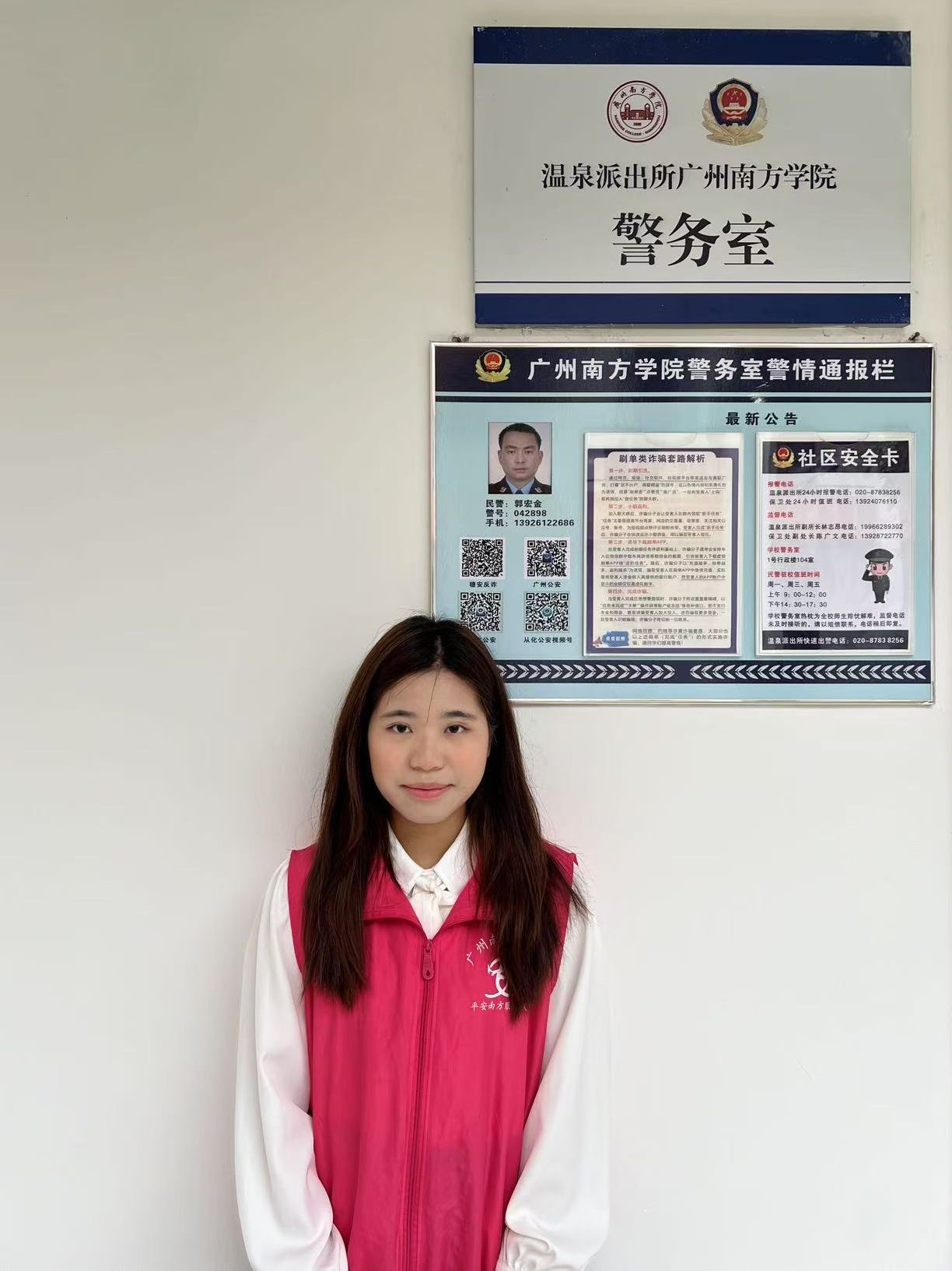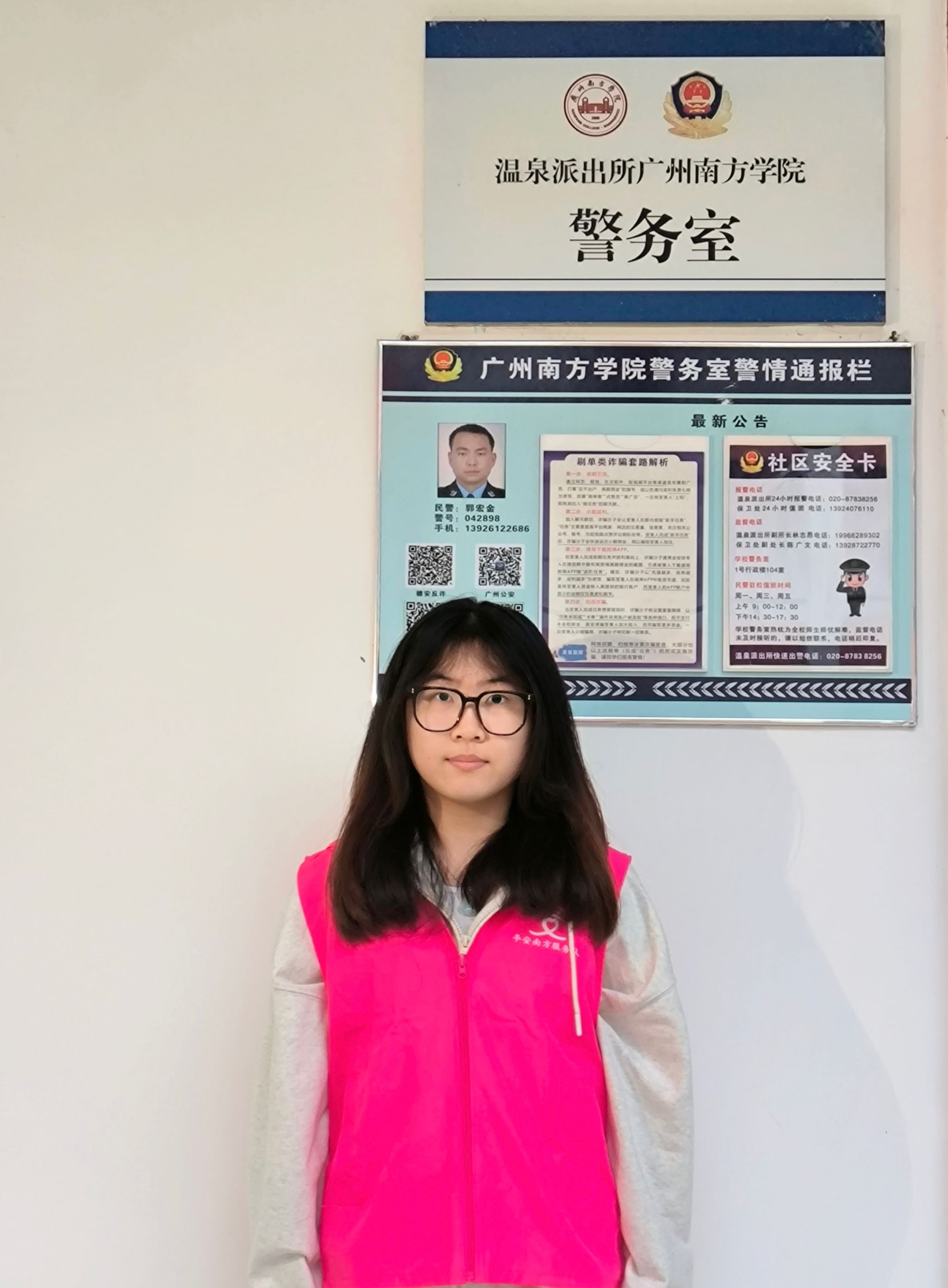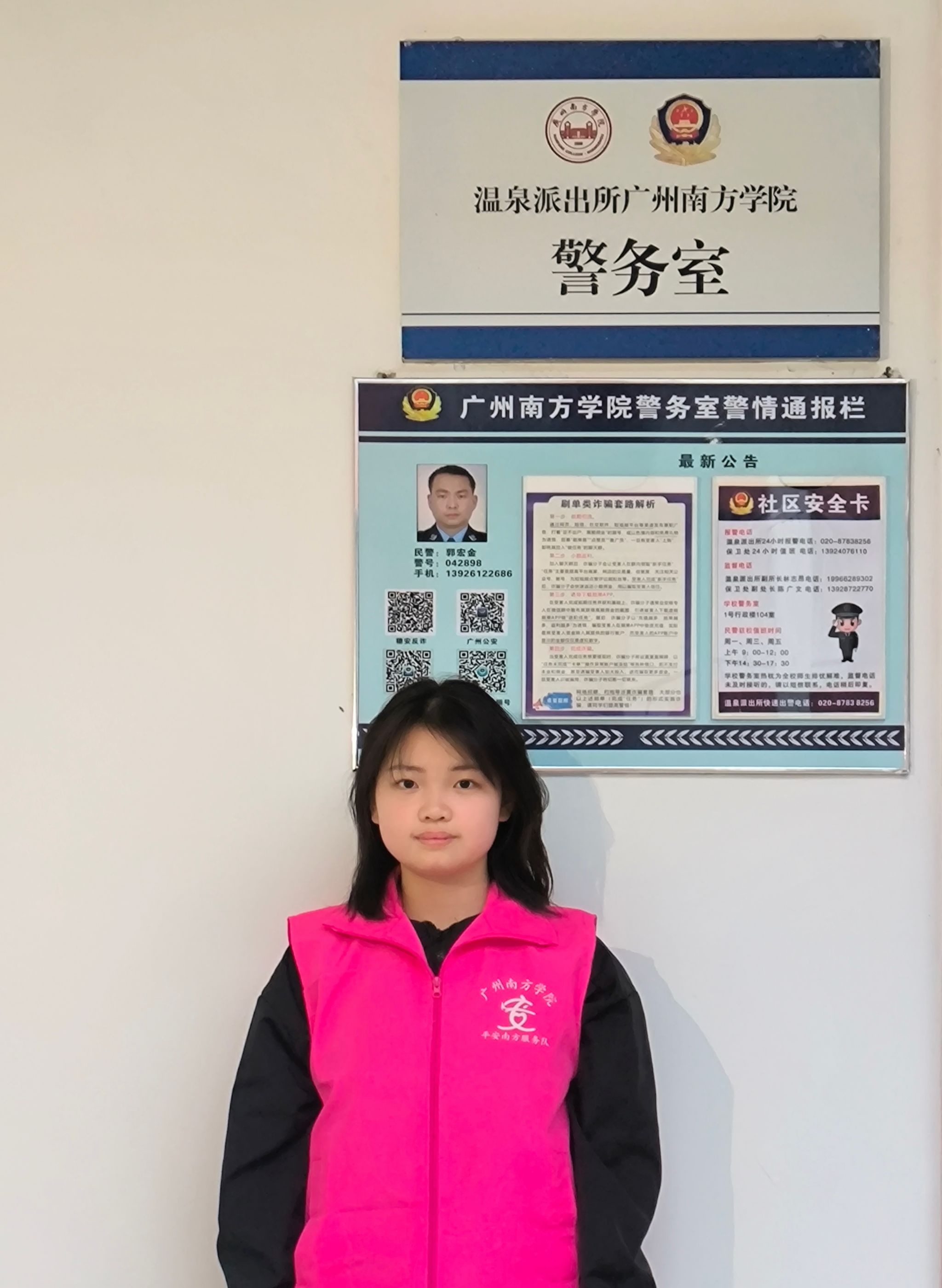 作为平安南方服务队一员,警官们带领我和队员们穿梭校园的每个角落,每一次敲门入户的“扫楼”宣传,都是守护同学钱袋子的重要防线。